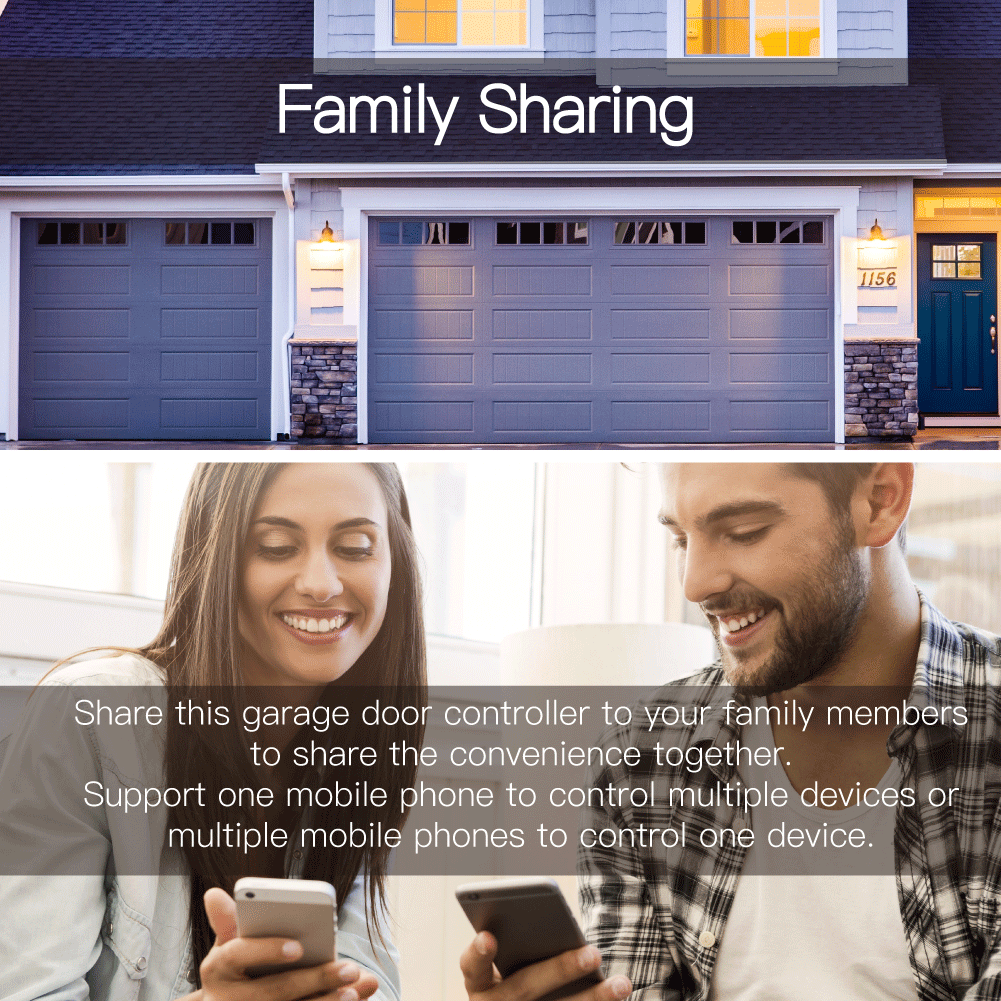 3. Fácil de usar para toda su familia: el acceso de múltiples usuarios proporciona comodidad de seguridad esperando la entrega de un paquete, abre remotamente la puerta del garaje para el conductor cuando llegue y luego ciérrala. Agregue una cámara remota en su garaje para mayor seguridad al monitorear la entrega.