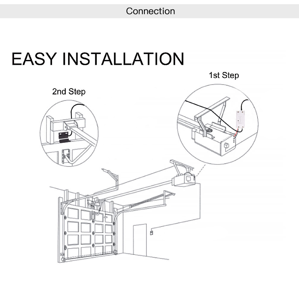 4. Dale a tu abridor de garaje el último cambio de imagen inteligente: se conecta simplemente a la mayoría de los modelos de abridor de puertas de garaje usando nuestras instrucciones fáciles de seguir. Compatible con la mayoría de los abridores de puertas de garaje, compruebe el modelo de su abridor de puertas de garaje en la sexta imagen.