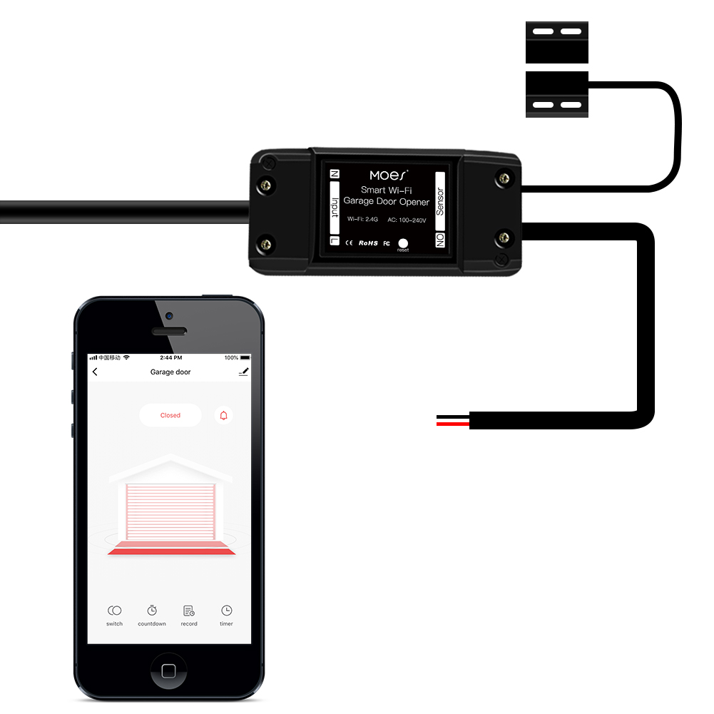 Controlador de puerta de garaje inteligente con WiFi, aplicación Smart Life, monitor remoto de apertura y cierre, compatible con Alexa Echo Google Home, sin necesidad de concentrador